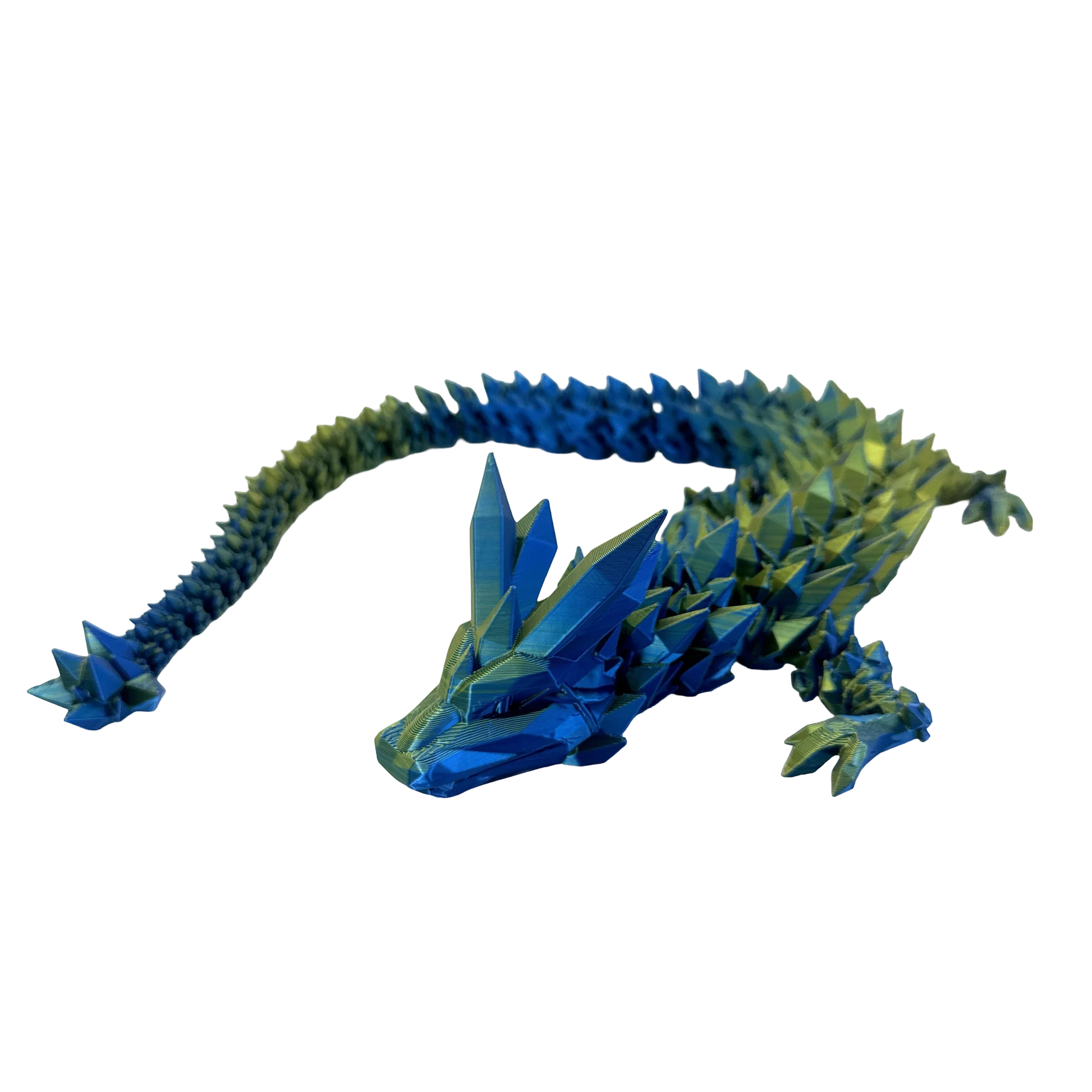 The Crystal Dragon is a majestic relic of the underground realms, where light is rare and gems whisper ancient truths. Unlike its sky-bound kin, this noble creature roams the glittering caverns of forgotten kingdoms, its crystalline body refracting the dim glow of enchanted stones.