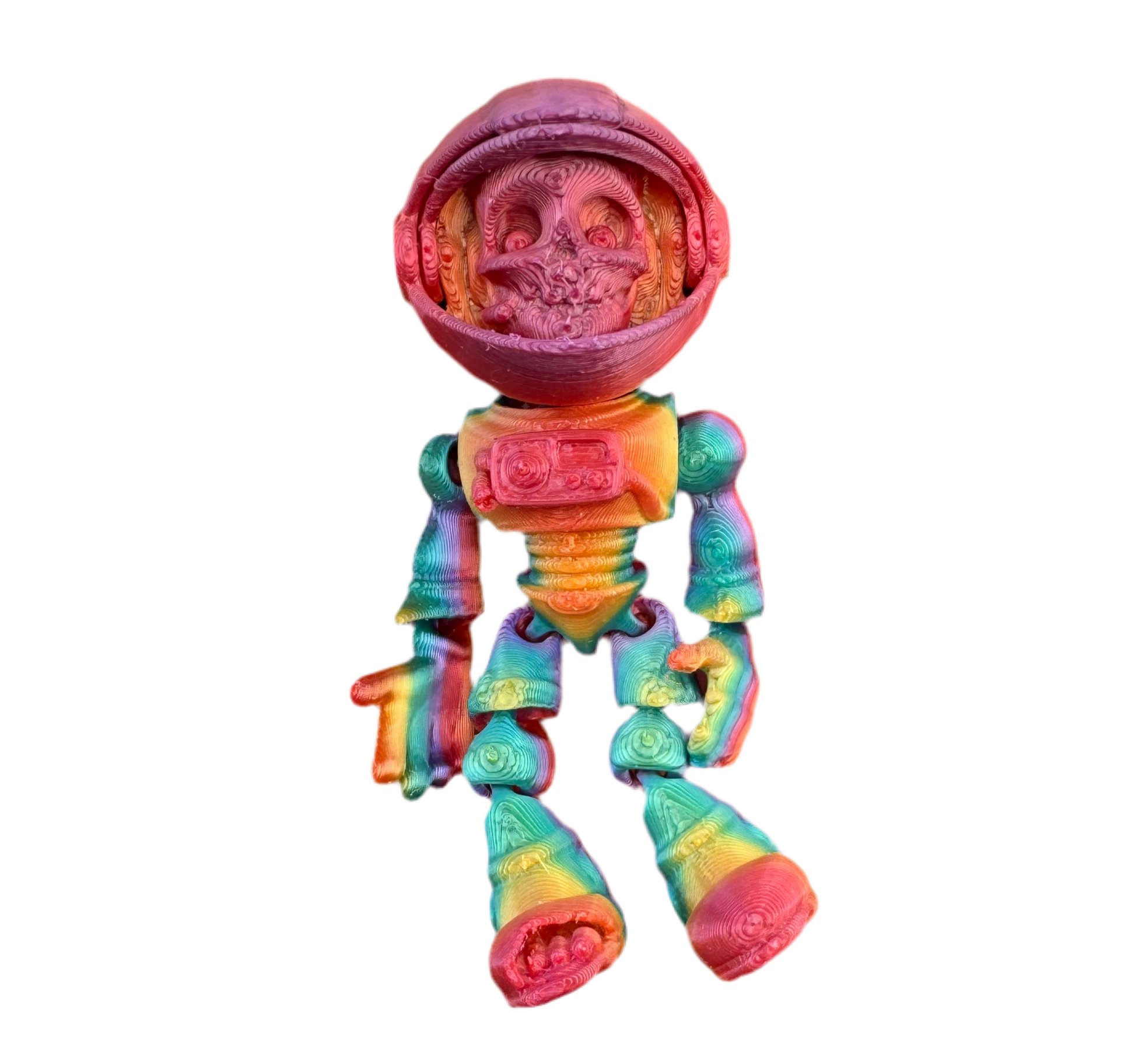 Articulated 3D printed toys, approximately 1–2 inches long. Compact, shakeable, and full of charm — perfect for pockets, desks, or as tiny companions.