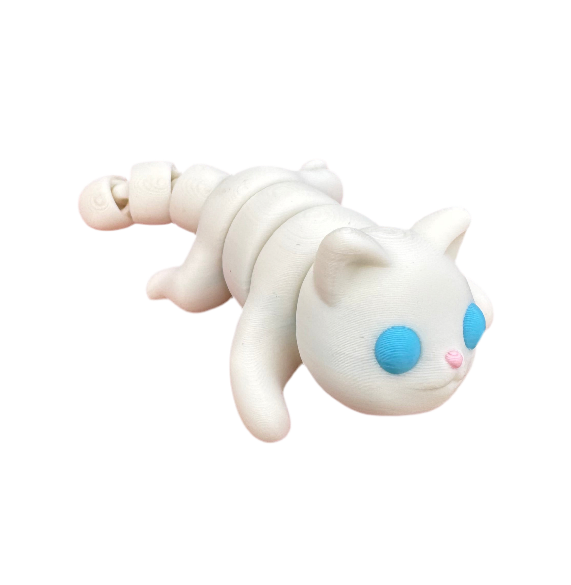 Articulated 3D printed toys, approximately 1–2 inches long. Compact, shakeable, and full of charm — perfect for pockets, desks, or as tiny companions.