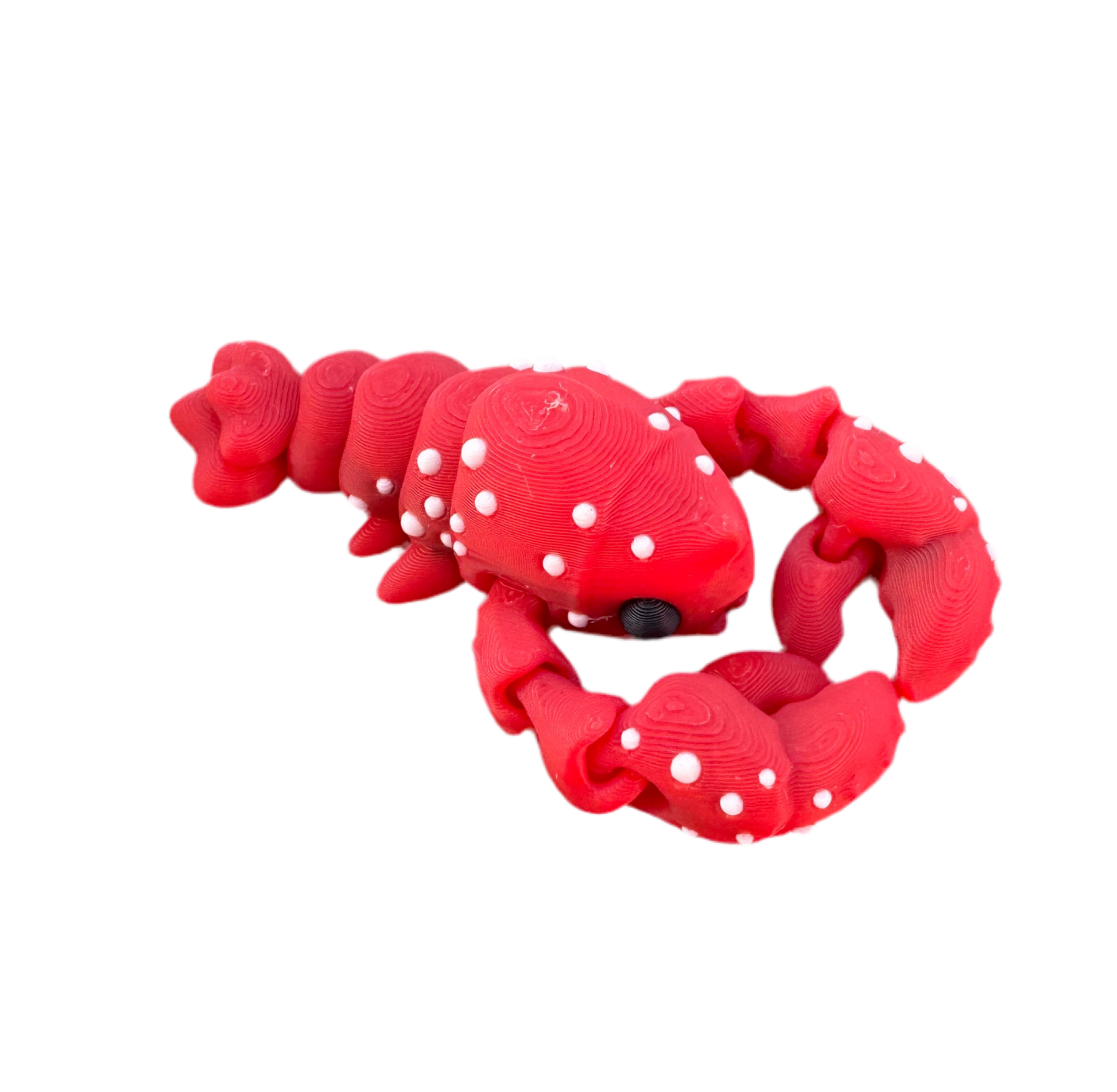 Articulated 3D printed toys, approximately 1–2 inches long. Compact, shakeable, and full of charm — perfect for pockets, desks, or as tiny companions.