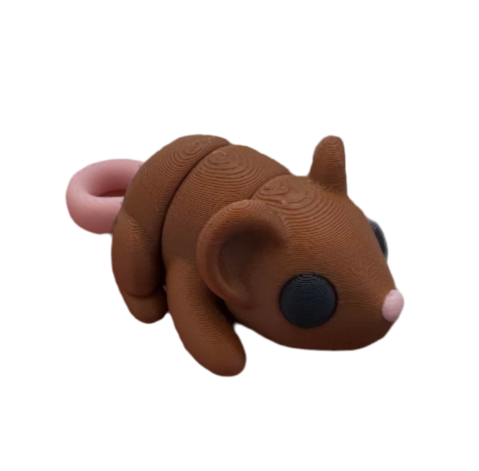 Articulated 3D printed toys, approximately 1–2 inches long. Compact, shakeable, and full of charm — perfect for pockets, desks, or as tiny companions.