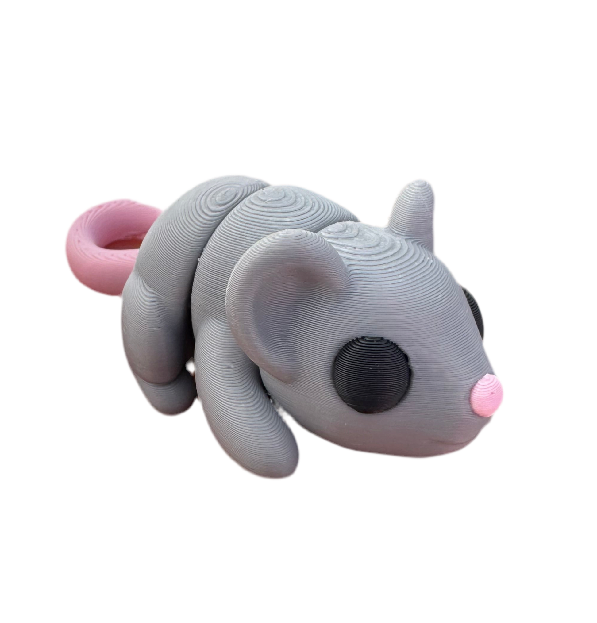 Articulated 3D printed toys, approximately 1–2 inches long. Compact, shakeable, and full of charm — perfect for pockets, desks, or as tiny companions.