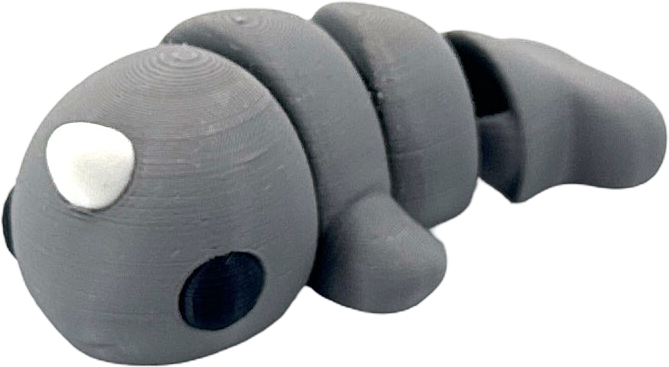 Articulated 3D printed toys, approximately 1–2 inches long. Compact, shakeable, and full of charm — perfect for pockets, desks, or as tiny companions.