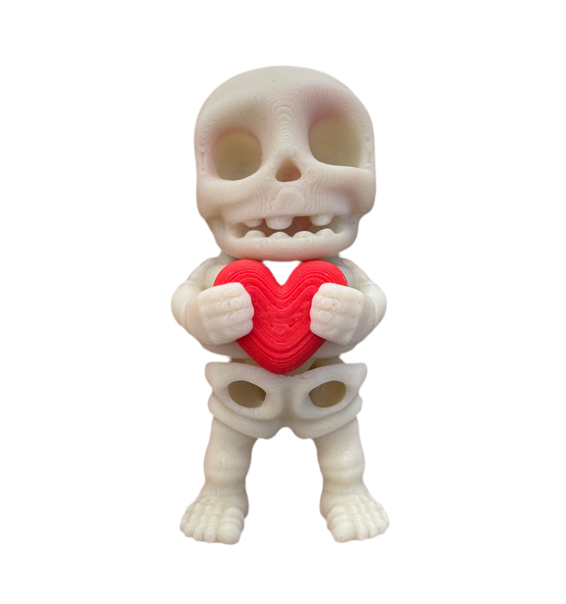 Articulated 3D printed toys, approximately 1–2 inches long. Compact, shakeable, and full of charm — perfect for pockets, desks, or as tiny companions.